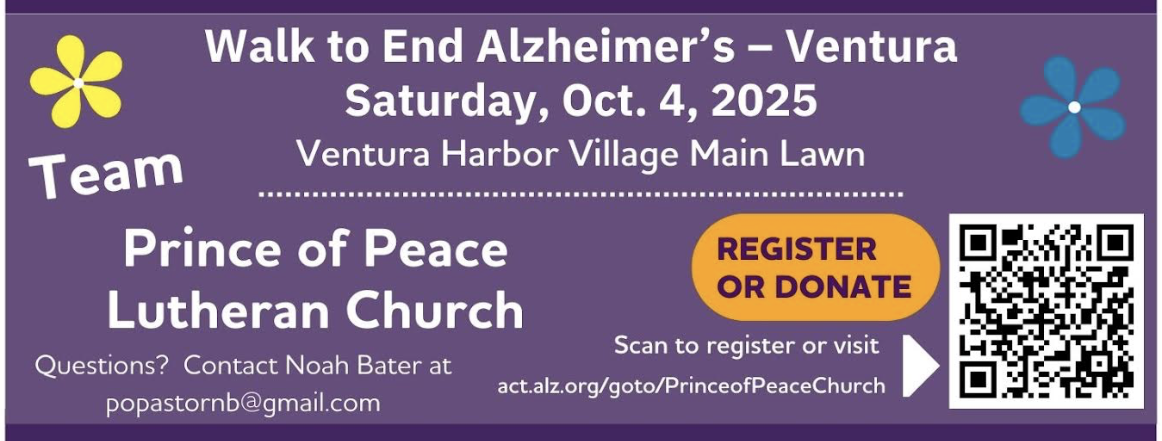 If you would like to donate toward our team or walk with us(!), click here. You can walk in honor of your own loved one—include their name when you register. We have so many people in our congregation who have been impacted by this disease, we hope this can be an occasion for us each to love and support one another. Please reach out to Pastor Bater if you have any questions!